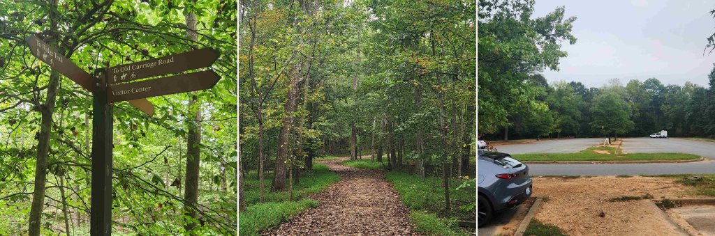 Backtrack on the Ridge Trail to connect to the Old Carriage Road. The signs are generally clear, but the map is a nice confidence booster. As you’d guess, the old carriage road is wide and smooth, allowing you to stop watching every step and instead be distracted by the birds and other wildlife. You’ll appreciate the change after the rocks on the River Trail. The park has many smooth trails like this for those who want to enjoy the outdoors without facing hazardous trails. On the pleasant fall Monday when I visited, there was plenty of parking, so I repeat my advice to avoid the weekend crowds.