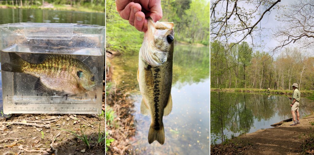 The Legacy Loop Trail passes Gordon Pond—a hidden gem. It’s peaceful, scenic, and a great little spot to take a break at the picnic table, cast a line, or just enjoy the quiet. It’s about a mile from parking at the Sawmill entrance to the park, or about 1 1/2 miles from the main entrance. I had it all to myself, which is ideal because it’s fairly small and could quickly become crowded. I had great luck landing lots of bluegill and small bass. Yes, I really do carry a container for pictures of smaller fish, and I use artificial lures with single, barbless hooks, which make releasing the fish easier on everyone. There are also catfish in the pond, and you’ll find some limited opportunities for fishing in the small creeks, where creek chubs were biting.
