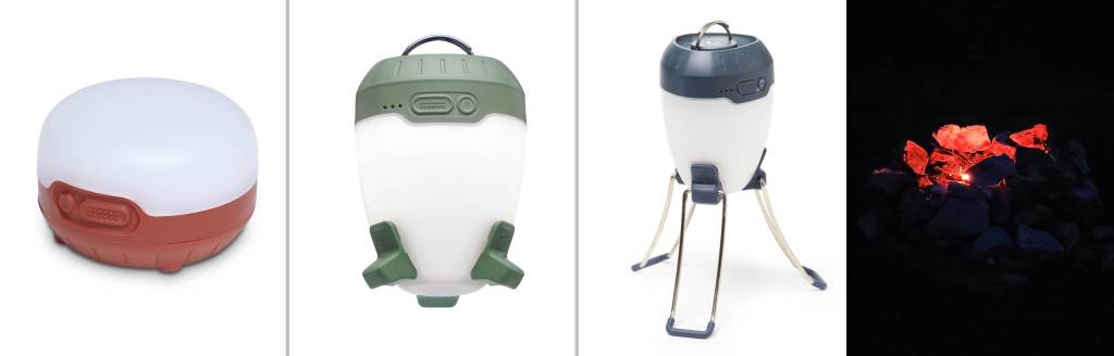 With 450 and 650 lumens, respectively, the Orbiter 450, second from left, and Orbiter 650, third from left, are a big step up in function, brightness, size, and weight. They include all of the lighting modes of the Moji+, plus a down beam function, and the Orbiter 650 literally has a leg up on its smaller sibling, with folding legs that allow a wide illumination area on a table. Their key feature is the Power Out port, which lets you charge your phone from the lantern. The Orbiter 450 has a 2,000mAh battery and weighs 272g, while the 650 offers a much-larger 5,200mAh battery and weighs nearly twice as much at 508g.
