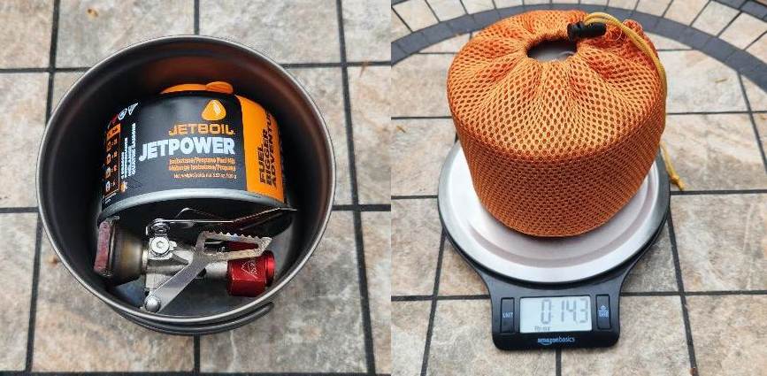 My cooking kit weighs in under a pound, including all of this: